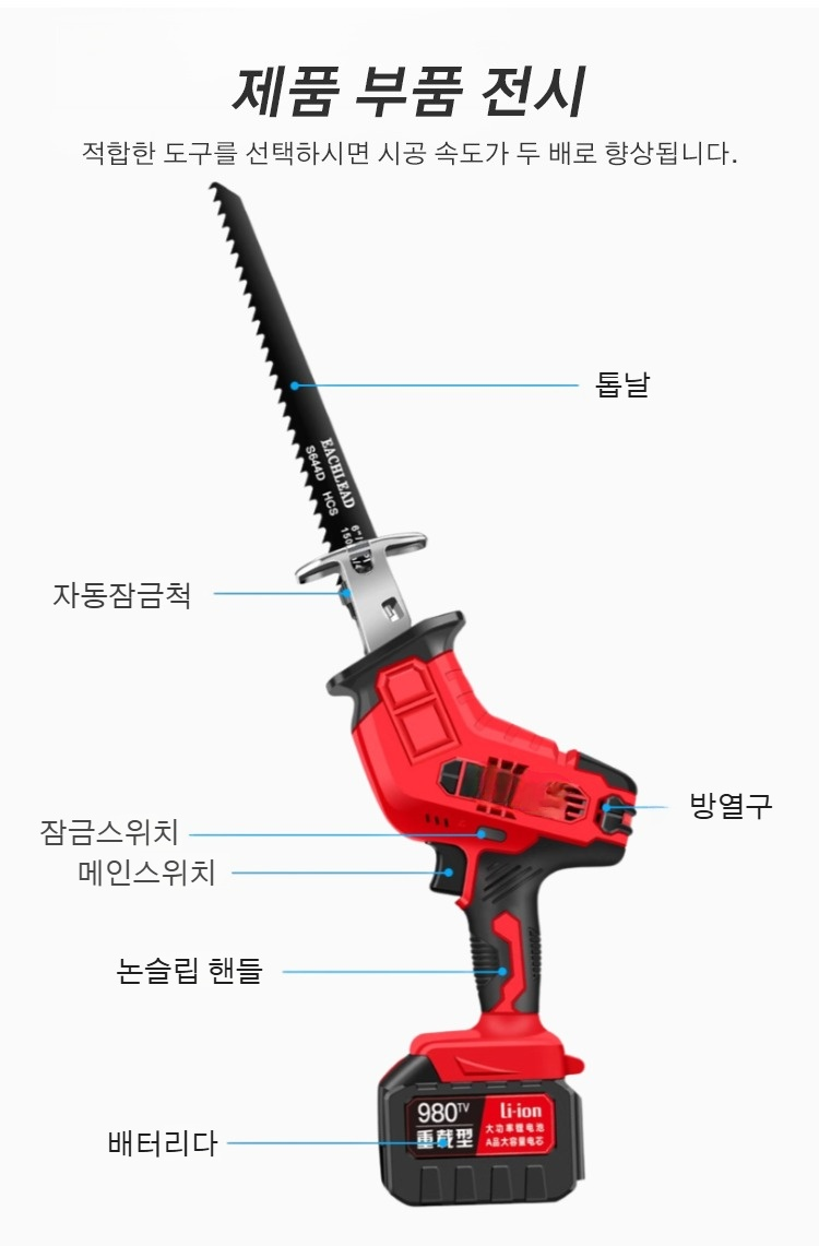 가정용왕복톱핸드소형고출력리튬전기충전식벌목톱